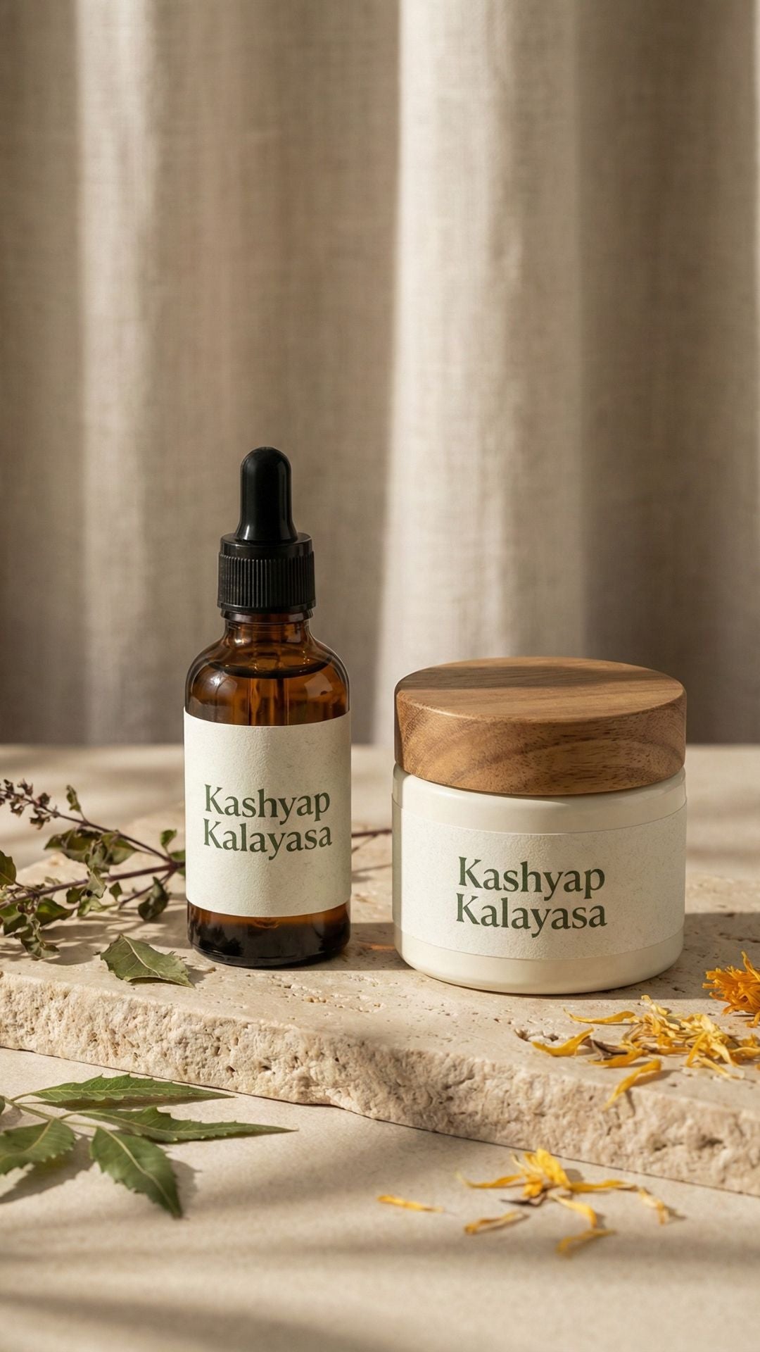 Desenvolvida pela Dra. Ananda Ruguê, a linha Kalayasa Kashyap oferece fórmulas ayurvédicas delicadas, criadas sob demanda para o cuidado especial de mães e bebês.